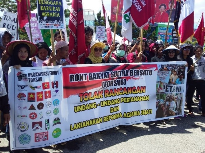 Tanggal 24 September 2019, SP Kendari melakukan aksi bersama jaringan yang tergabung dalam Front Rakyat Sultra Bersatu (FORSUB) untuk menolak pengesahan RUU Pertanahan. Aksi ini dilakukan di Kanwil Badan Pertanahan Nasional Sulawesi Tenggara, dengan tema “Perkuat Persatuan Rakyat – Tolak RUU Pertanahan – Laksanakan Reforma Agraria Sejati”. Jaringan masyarakat sipil menilai bahwa saat ini Pembahasan RUU Pertanahan yang sedang dibahas oleh DPR RI ini tidak mempertimbangan situasi agraria. DPR bersikukuh untuk segera mengesahkan RUU Pertanahan. Sementara, Indonesia tengah mengalami 5 (lima) pokok krisis agraria, yakni: (1) Ketimpangan struktur agraria yang tajam; (2) Maraknya konflik agraria struktural; (3) Kerusakan ekologis yang meluas; (4) Laju cepat alih fungsi tanah pertanian ke non pertanian; (5) Kemiskinan akibat struktur agraria yang menindas. UU terkait pertanahan seharusnya menjadi basis bangsa dan Negara kita untuk mewujudkan keadilan agraria sebagaimana dicita-citakan pasal 33 UUD 1945, TAP MPR IX Tahun 2001 tentang Pembaruan Agraria dan Pengelolaan Sumberdaya Alam (PA-PSDA) dan Undang-Undang No.5 Tahun 1960 tentang Peraturan Dasar Pokok-Pokok Agraria (UUPA 1960).